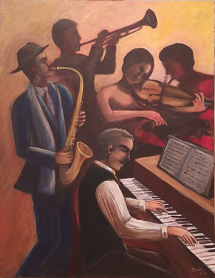 | Original Oil Painting ,Jazz Quinteto size 30x40 |